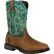 Georgia Boot’s Carbo-Tec LT line is known for an incredibly durable sole with lightweight comfort. This women’s waterproof pull on work boot is crafted with our premium SPR™ leather. Tougher and more abrasion resistant than conventional leathers, it’s also pasture proof. The special tanning process makes the leather naturally resistant to many chemicals and alkalis found in barnyard environments. The upper features a teal leather shaft with western fancy stitch, leather pull straps and a rear zipper for easy on and off.