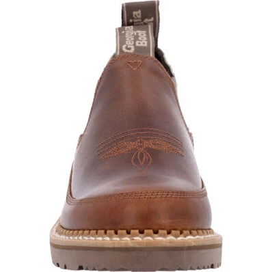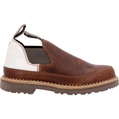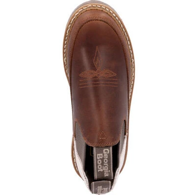 Step out in style with this Georgia Giant paisley Romeo! This limited edition Romeo boot features a rich brown leather upper with a paisley print textile heel. Twin gore panels and nylon pull loops allow for easy pull on. Inside this women’s casual shoe is a removable memory foam insole for all day customized comfort. The polyurethane outsole contains a steel shank for added durability.