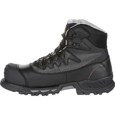 The Georgia Boot Rumbler composite toe waterproof hiker work boot includes all the same great features of the Rumbler collection with a hiker style. The upper features a combination of leather and TPU infused nylon giving it great abrasion resistance. Dual functioning hardware allows you the option of using as a hook or eyelet. This hiker boot also features an external TPU toe cap for added abrasion resistance and durability and a padded tongue and collar for extra comfort. The removable leather Comfort Cover prevents pinch points while providing protection.