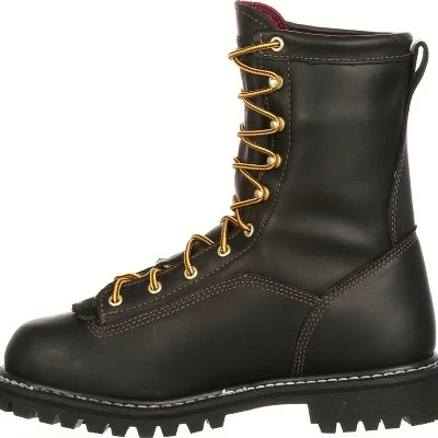Georgia crafted these Insulated Lace-To-Toe Work Boots with black full-grain leather; the material is tough and durable, yet remains naturally soft. All of the boot eyelets and stud hooks have been attached to steel washers, so you won’t have to worry about them being pulled off while you’re working. The lace-up design allows your feet to rest securely, and it enables you to adjust the boots for a comfortable fit.Inside are 200 grams of 3M™ Thinsulate™ Insulation to keep you warm. The interior is fully-lined and has a removable cushioned Orthotic insole. As you’re working, you’ll have steady footing and arch support because these work boots have a steel shank.Georgia built this Lace-To-Toe boot using Goodyear® welt construction for durability and strength.These Georgia boots are completed with Vibram® Lug rubber outsoles that are hard-wearing, have great flexibility and resist abrasions, heat, chemicals and oil. You can go just about anywhere and find a pair of work boots; what makes these Georgia Insulated Lace-To-Toe Work Boots different is that they’re made from quality materials and they’ll keep your feet warm, dry and comfortable.