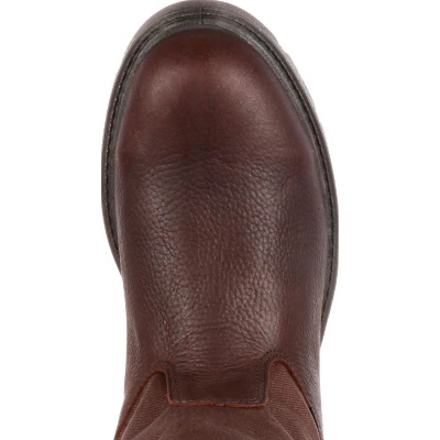 This steel toe waterproof wellington boot is part of the Georgia Boot® Homeland Collection. Technology-driven comfort.This men’s boot provides foot safety with a protective toe and electrical hazard protection. It meets ASTM standards for both features.Full-grain waterproof leather with 900D CORDURA® fabric keeps your feet dry in muddy and wet conditions.As with all footwear in the Homeland collection, this pull-on boot has a direct-attached oil-resistant PVC outsole for flexibility and comfort.The Homeland’s polyurethane TDC insole never breaks down and has channels to promote air circulation, helping keep your feet cool all day.